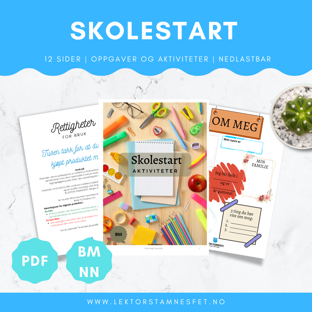 Her finner du aktiviteter for skolestart og for å bli kjent med en ny klasse. Inneholder både bokmål og nynorsk, i hver sine hefter.